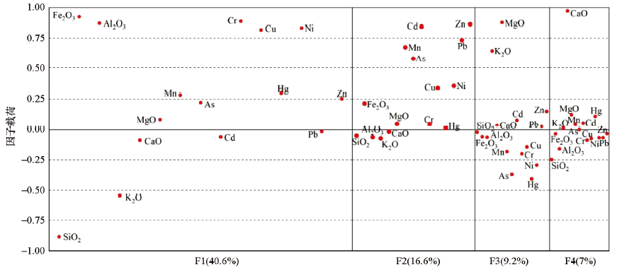 | 图5 关上组(D1g)土壤元素旋转因子载荷 |