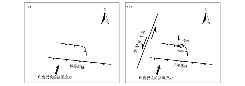 | 图5 阿拉尔断裂运动模式示意 a—新生代早期;b—新生代晚期 |