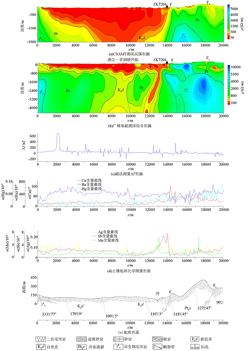 | 图3 衡阳盆地西北缘综合物化探剖面 |