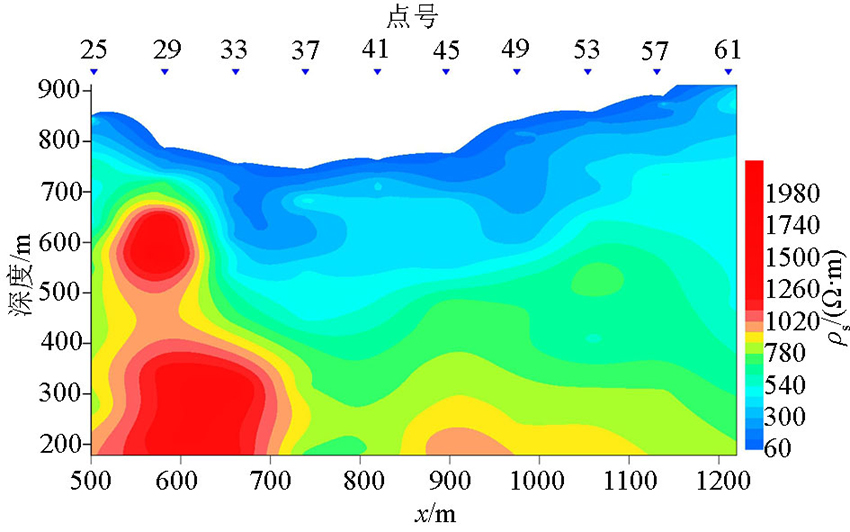 | 图8 鸡冠沟激电测深视电阻率拟断面 |