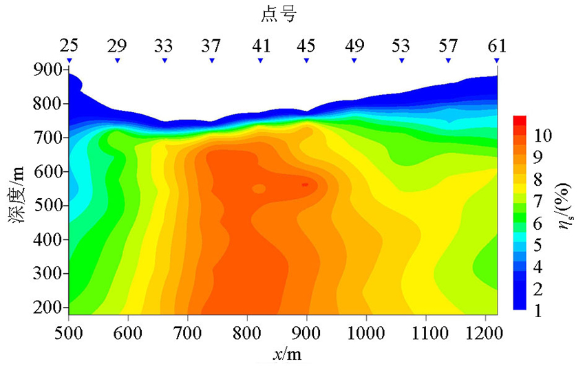 | 图9 鸡冠沟激电测深视极化率拟断面 |