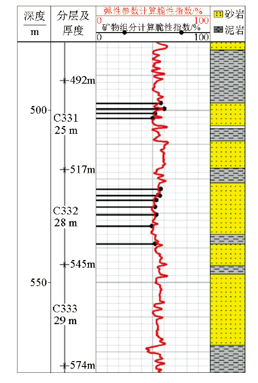 | Fig.8 Prediction of brittleness index of tight oil wells in Weibei area |