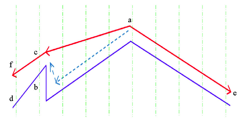 | Fig.7 3D plane survey grid diagram(“—.—” is DEM data) |