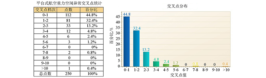 | Fig.12 Intersection statistics of original space gravity anomaly of platform-based airborne gravity exploration system |
