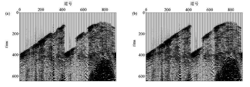 | Fig.2 Comparison of shot gather between before(a) and after(b) static corrention |