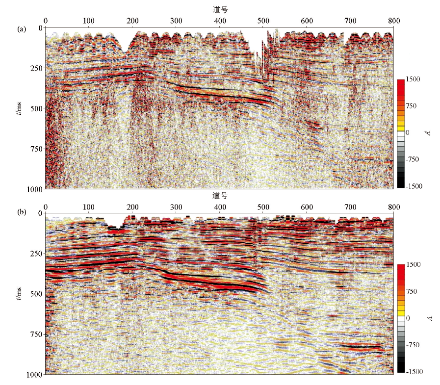 | 图8 插值前(a)后(b)叠加剖面对比 |