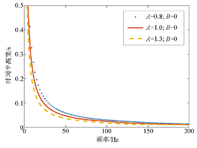 | 图1 广义S变换窗函数时间半高宽随频率变化 |