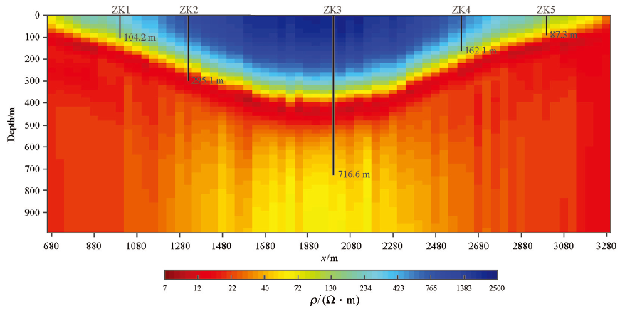 | Fig.10 The section view stitched from the single-point 1D inversion models for survey line 1 |