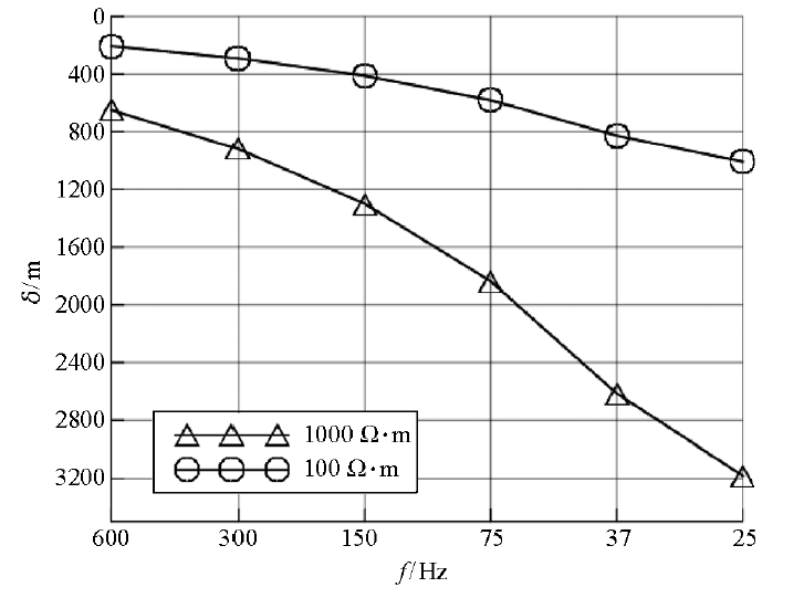 | 图2 频率-趋肤深度曲线 |