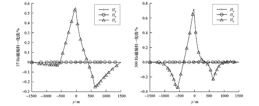 | Fig.5 Variation trend of three components of magnetic field at two typical frequencies |
