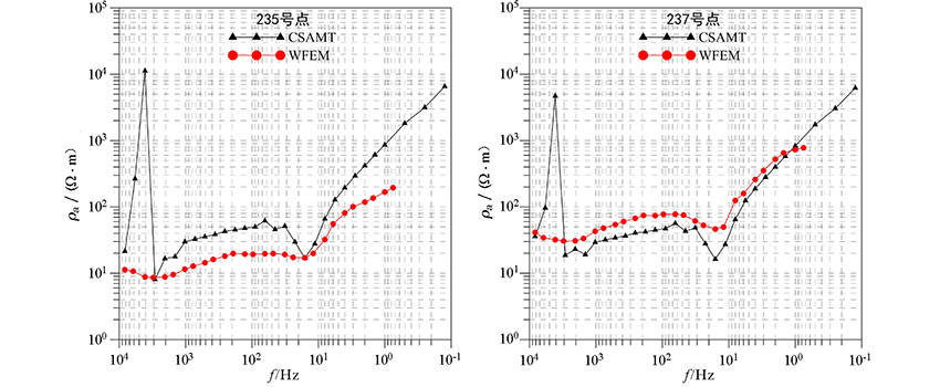 | 图4 235、237号点CSAMT和WFEM视电阻曲线对比 |