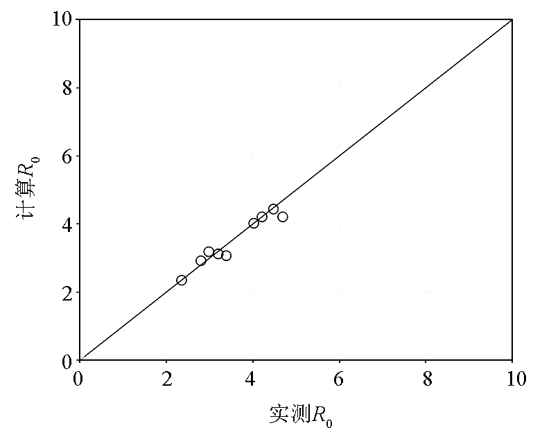 | 图5 QHD油田X井4个参数最优化结果与实测R0对比 |