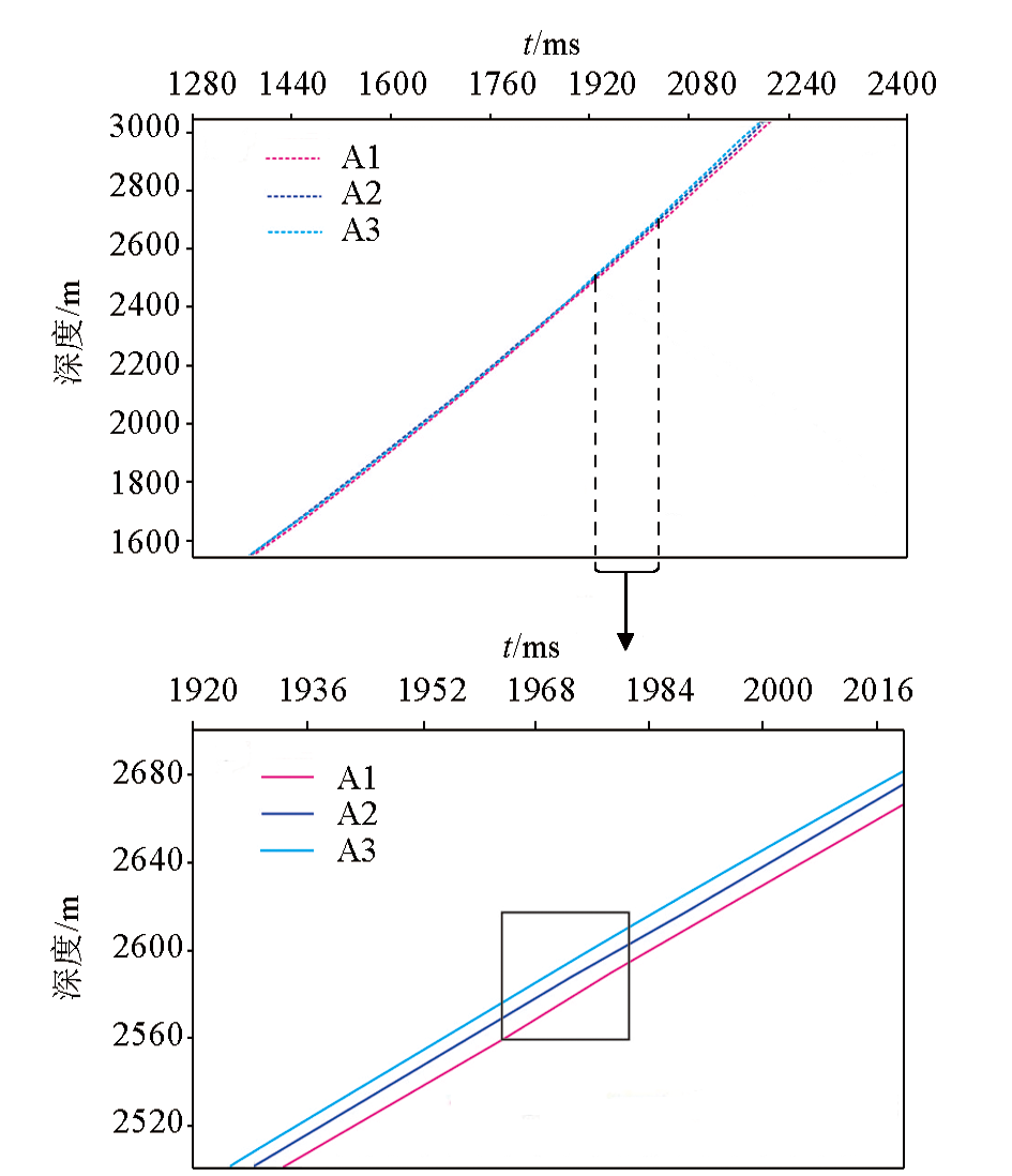 | 图3 番禺A地区3口井时间—深度对应关系 |