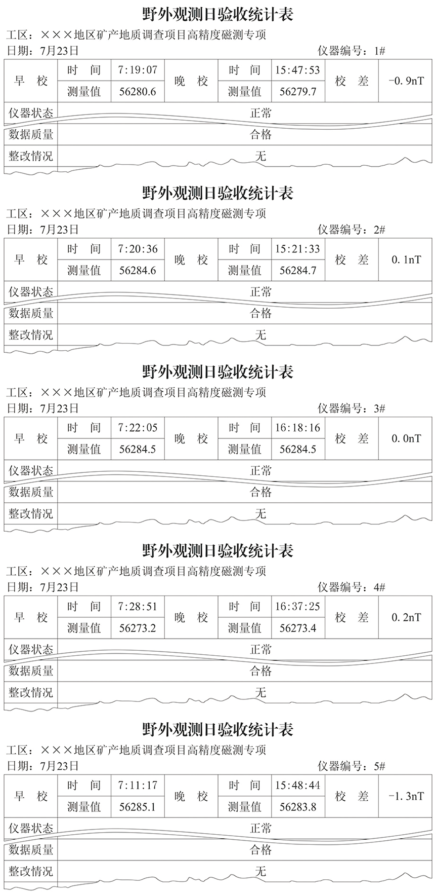 | Fig.2 Daily check and accept record of a high-precision magnetic survey project on a certain day (excerpt) |