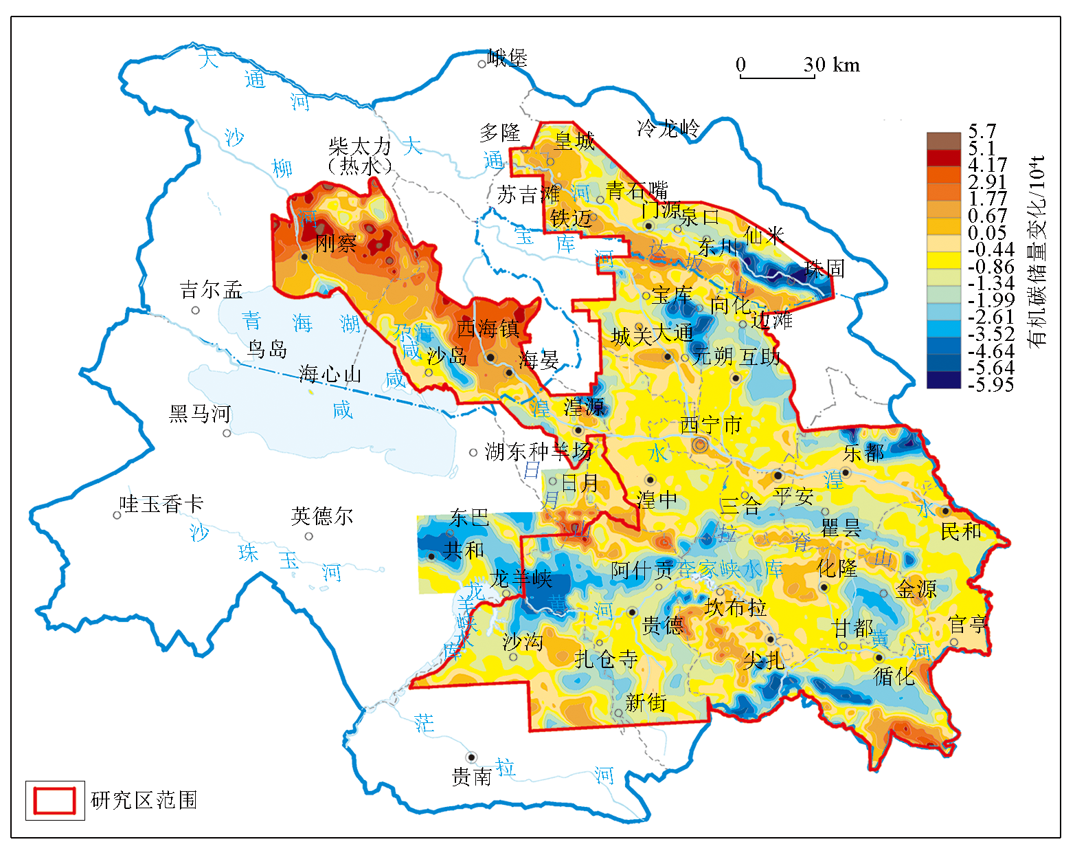 | 图4 青海东部地区近20年表层土壤有机碳储量变化趋势 |