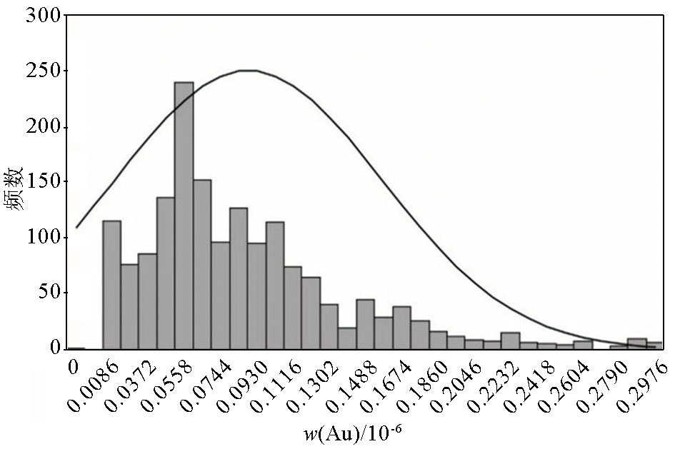 | 图7 624~625纵剖面Au异常背景值正态分布—直方图 |