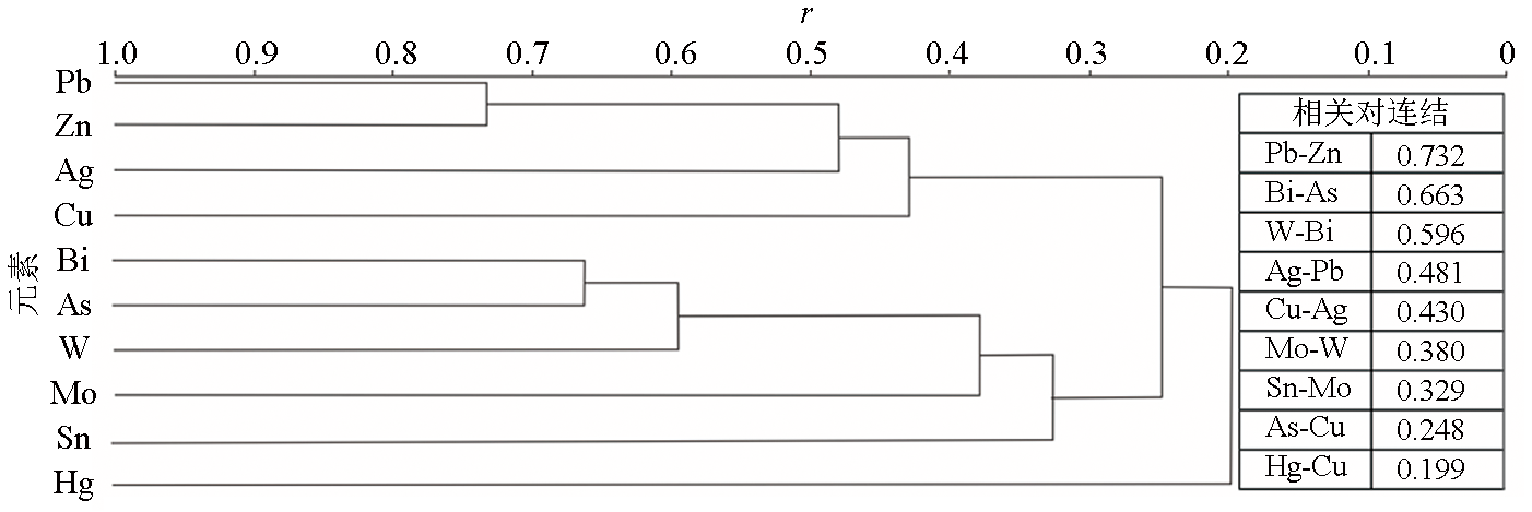 | 图4 矿区土壤地球化学测量R型聚类分析谱系 |