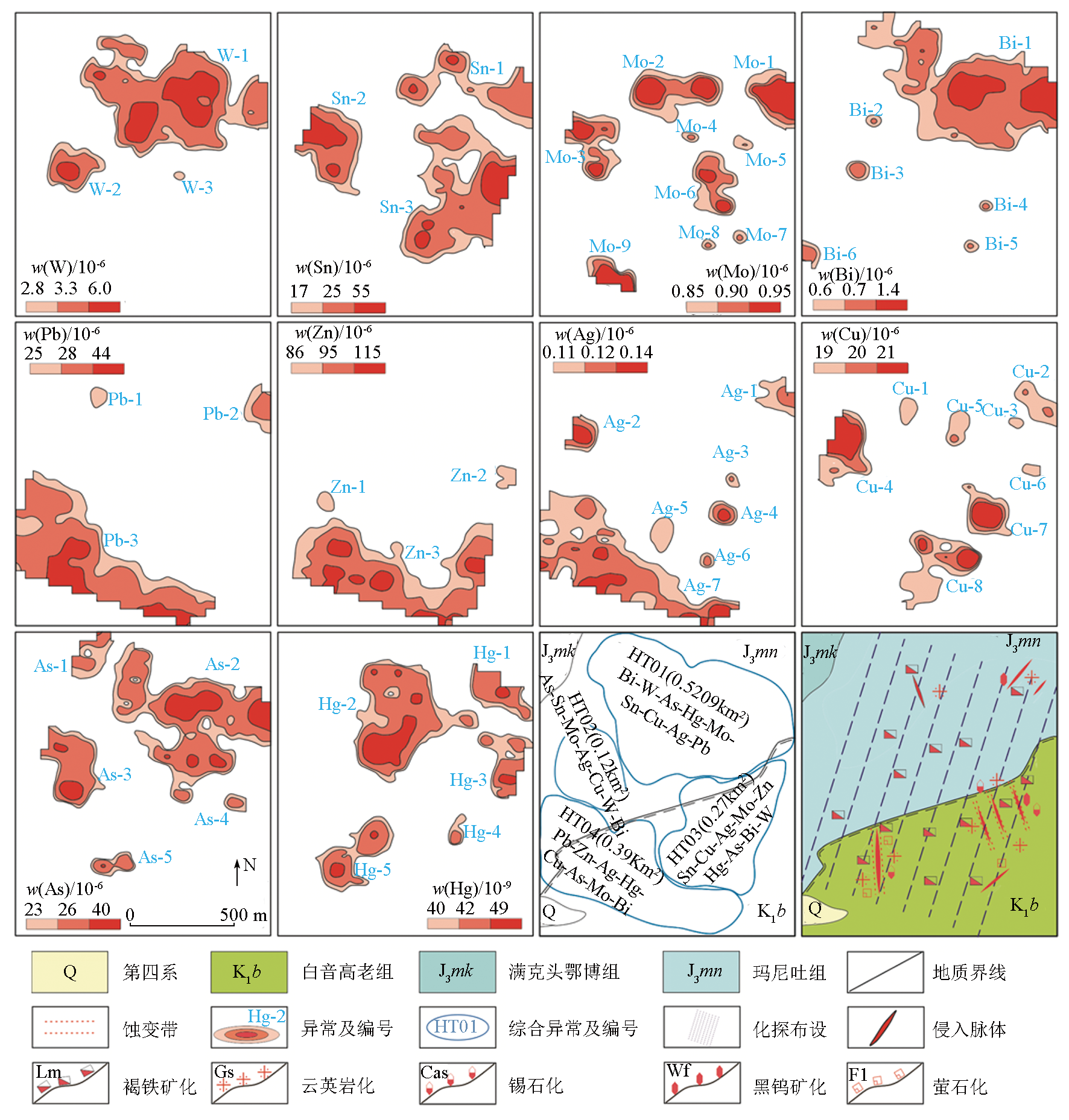 | 图5 矿区成矿元素异常分布 |