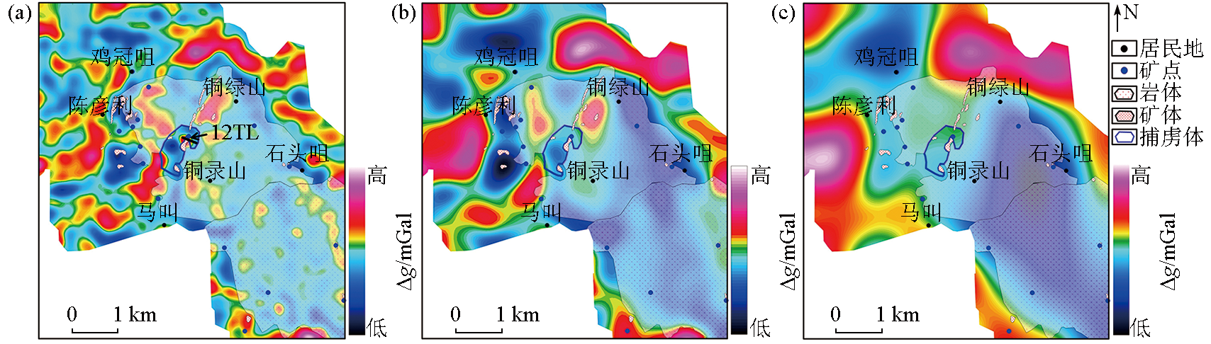 | 图3 铜绿山矿田布格重力异常小波变换2~4阶细节 a—布格重力异常小波变换2阶细节;b—布格重力异常小波变换3阶细节;c—布格重力异常小波变换4阶细节 |