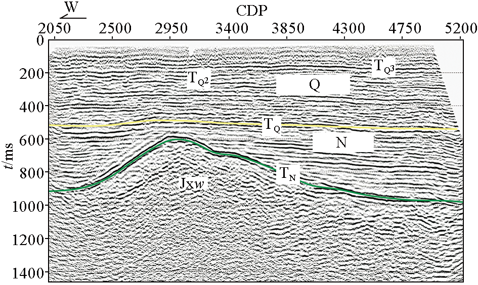| Fig.7 2D seismic survey line in the south of Rongcheng uplift |
