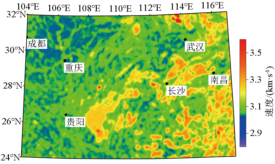 | 图4 华南陆块中部表层S波速度模型 |