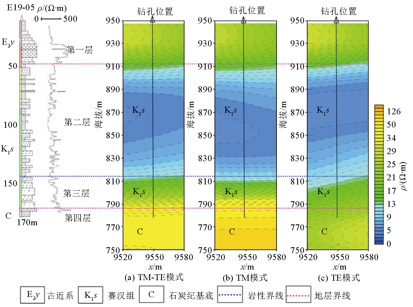 | 图3 钻孔旁不同数据模式反演结果对比 |