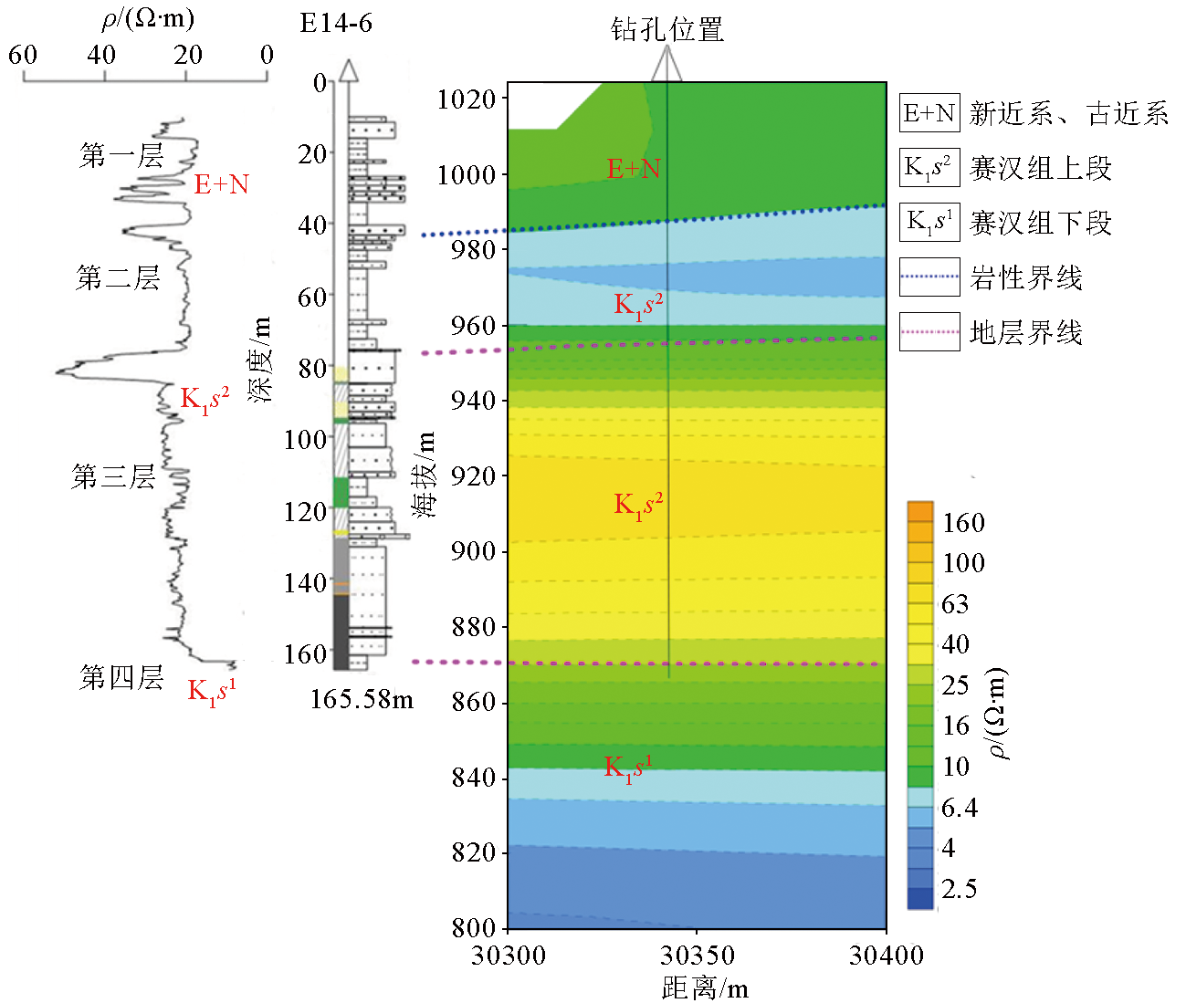 | 图8 反演电阻率断面与E14-6钻孔资料对比 |