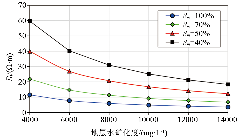 | 图4 不同矿化度、不同饱和度岩石电阻率值模拟计算 |