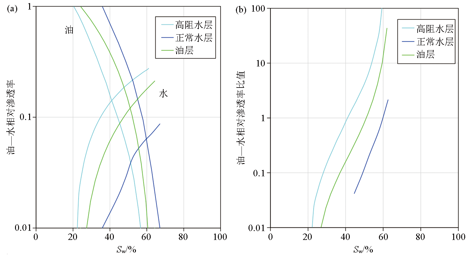 | 图5 陆丰凹陷古近系正常水层、高阻水层与油层相渗曲线 |