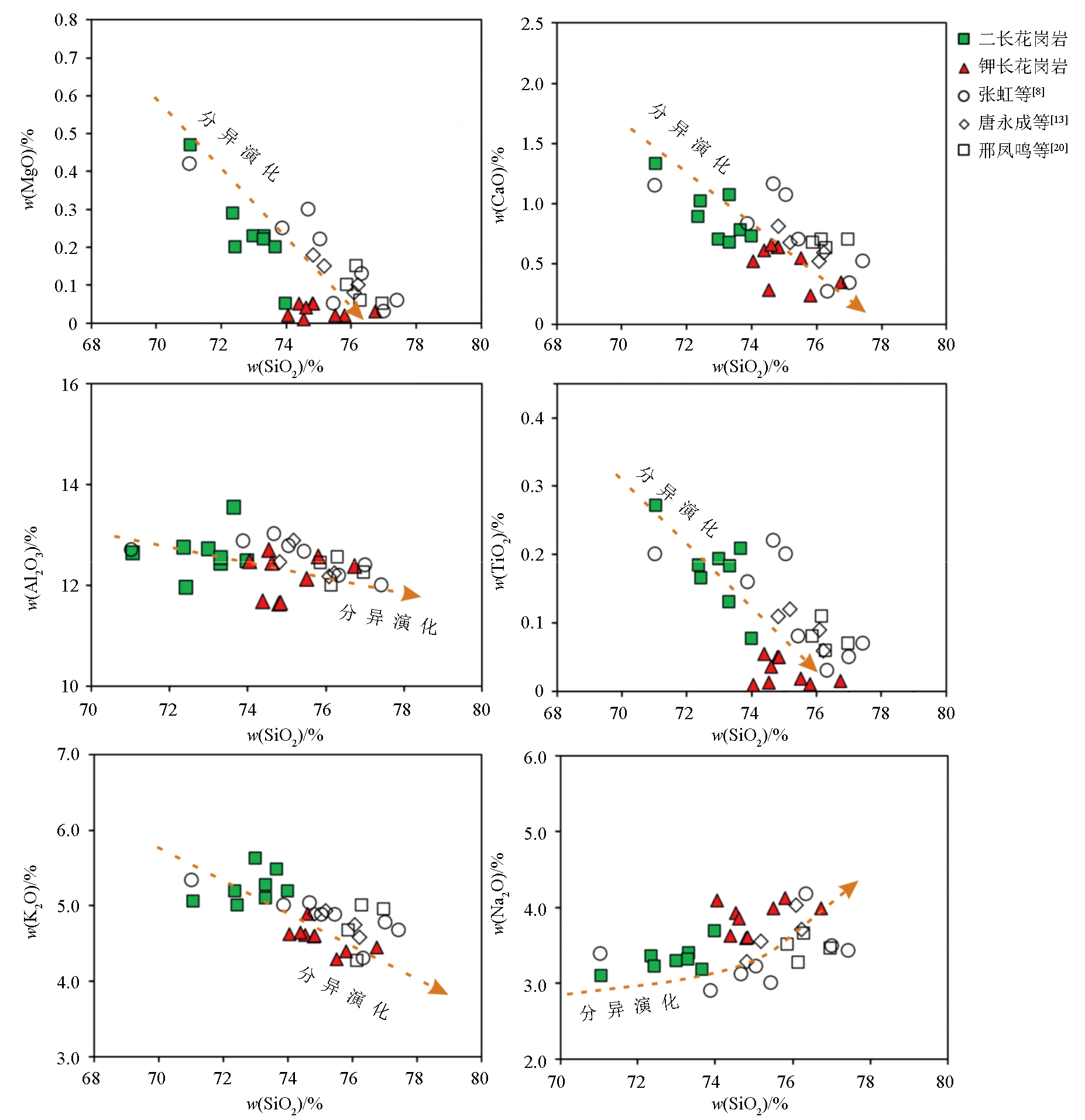 | Fig.5 Harker diagram of major elements of Fuling pluton |