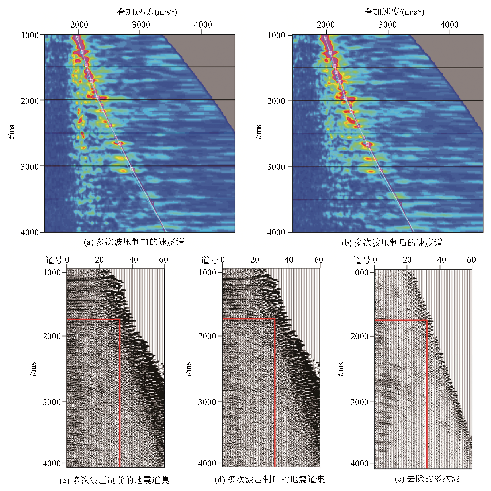 | 图6 研究区地震资料多次波去除前后对比 |