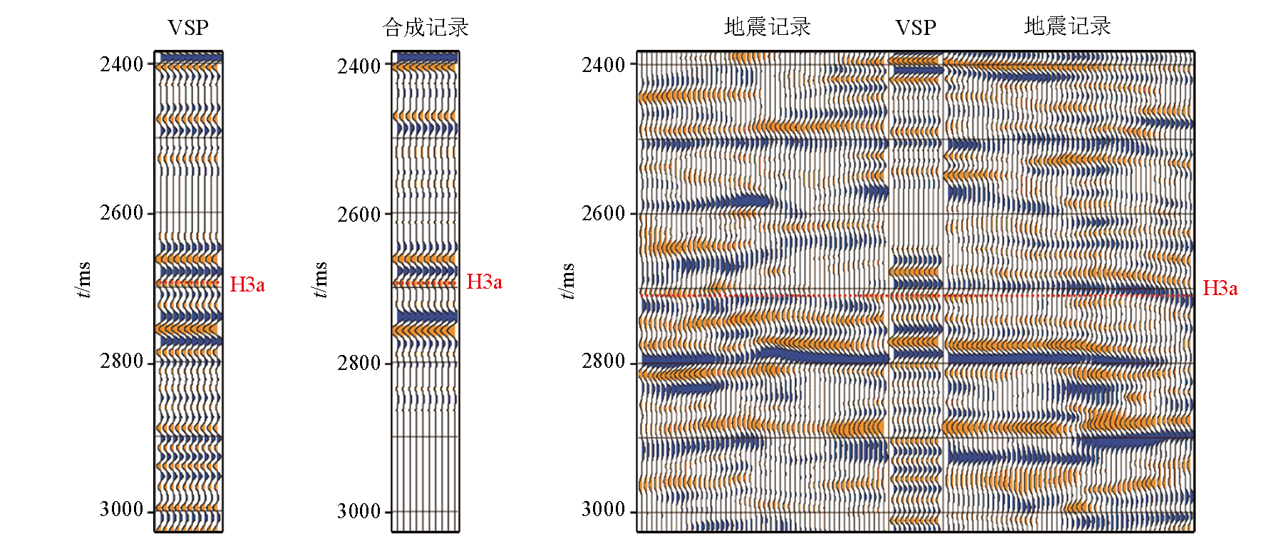 | 图8 VSP走廊叠加道、合成记录与地震剖面对比 |