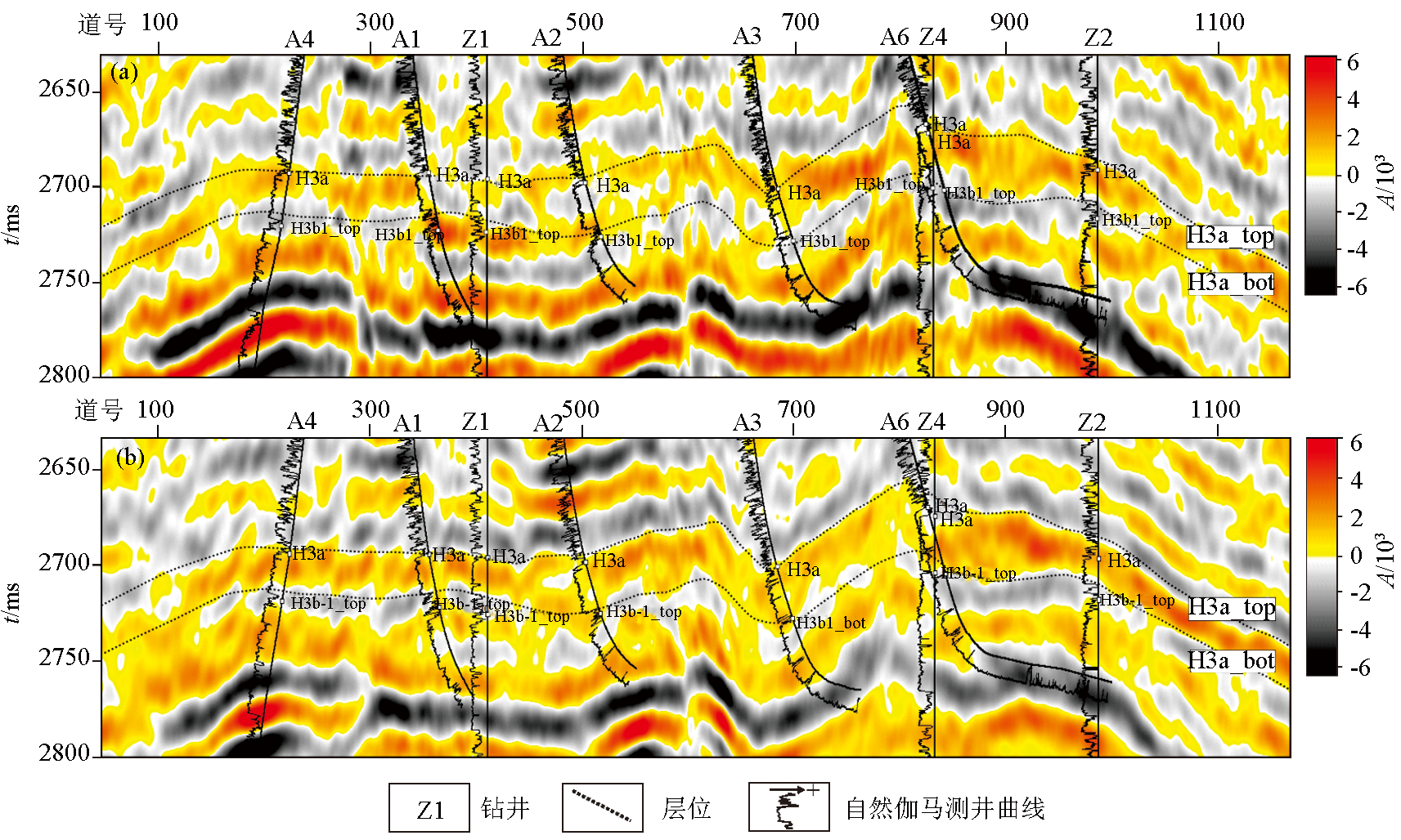 | 图9 连井常规叠加剖面(a)与优势道叠加剖面(b)对比 |