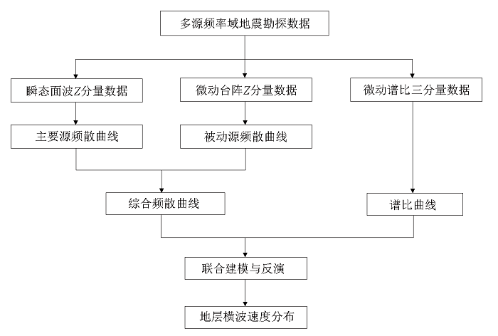 | Fig.1 Technical flow of multi-source frequency domain seismic wave exploration |