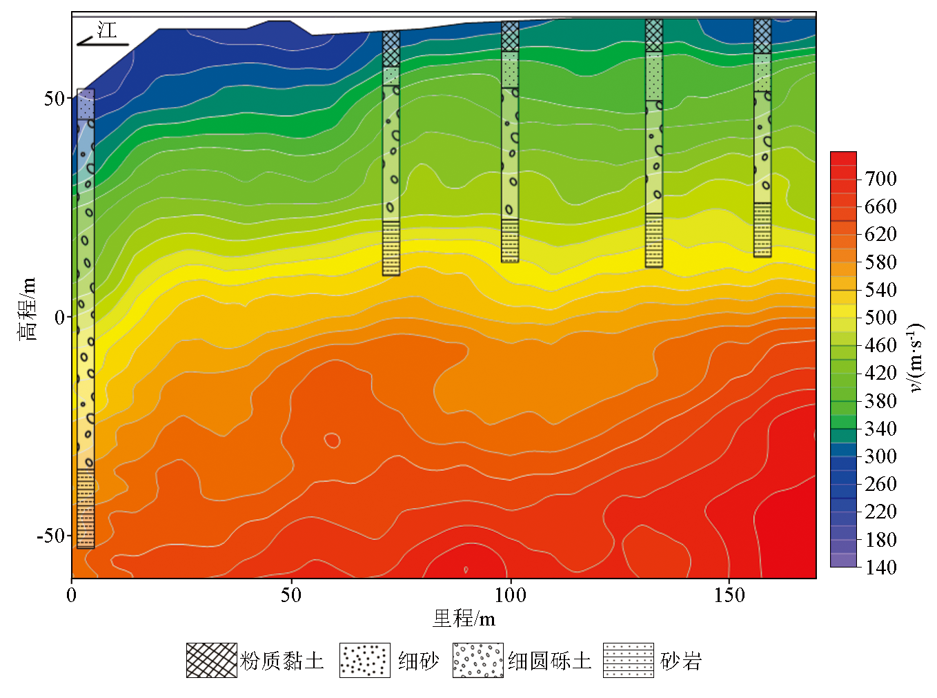 | Fig.12 Schematic of comparison between inversion results of multi-source frequency domain seismic wave exploration and boreholes |