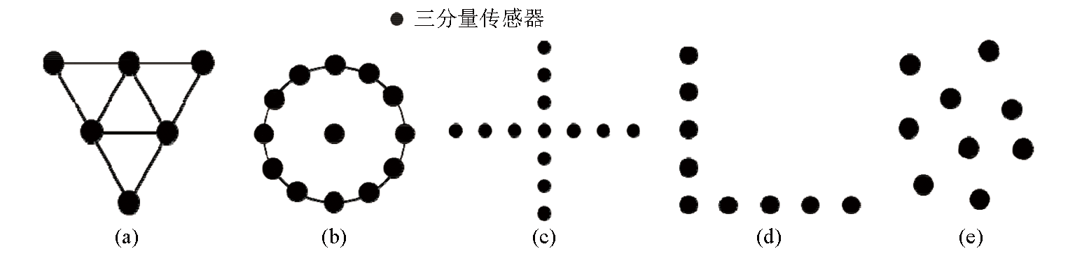 | 图3 非线性观测装置数据采集示意 a—内嵌三角形型;b—同心圆型;c—十字型;d—L型;e—不规则型 |