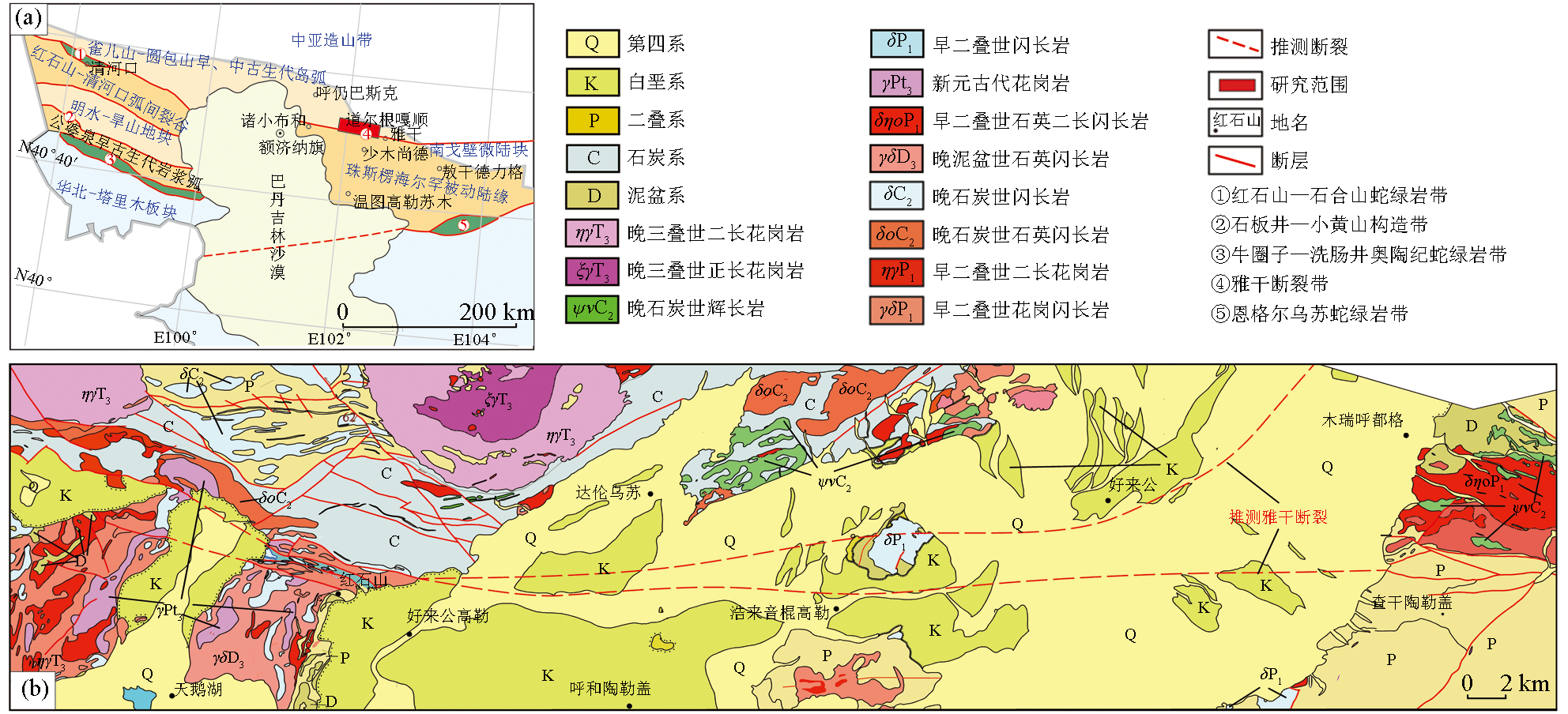 | 图1 研究区大地构造位置及地质与构造简图 a—研究区大地构造位置;b—研究区地质与构造简图 |