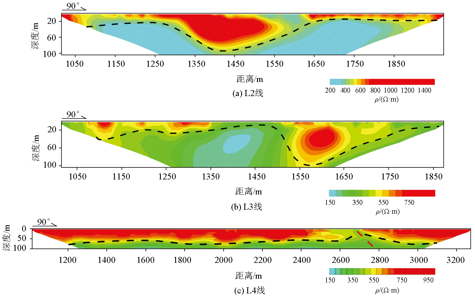 | 图3 高密度电阻率法的反演电阻率断面 |