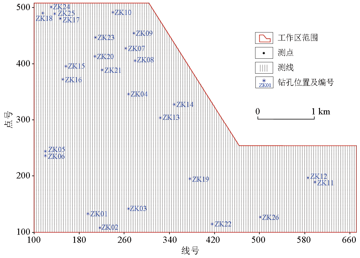 | Fig.4 Layout of survey line and drilling location |