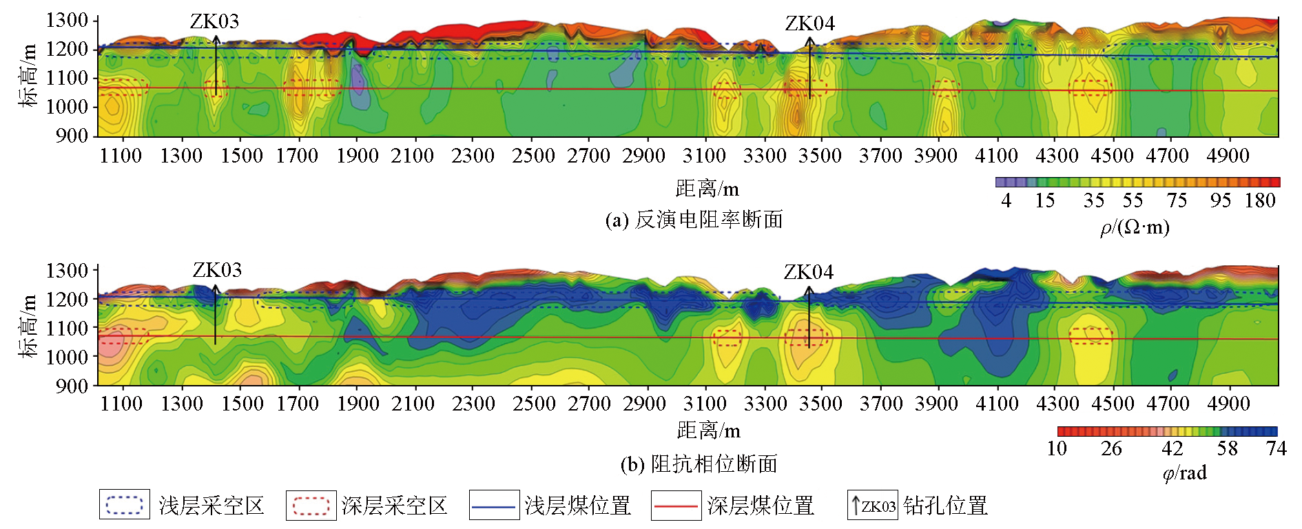 可控源音频大地电磁法电阻率与阻抗相位双参数综合判定煤矿双层采空区 |
