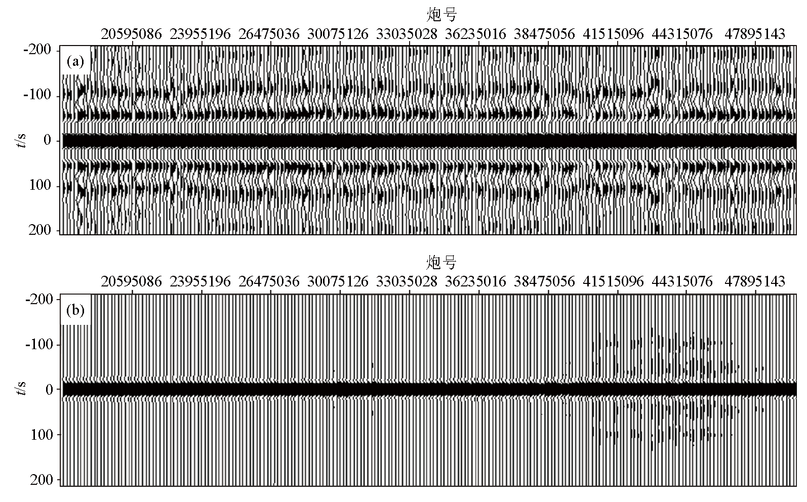 | Fig.8 Autocorrelation of shot gathers before (a) and after (b) of shallow layer Q compensation of Inline20 of swath L |