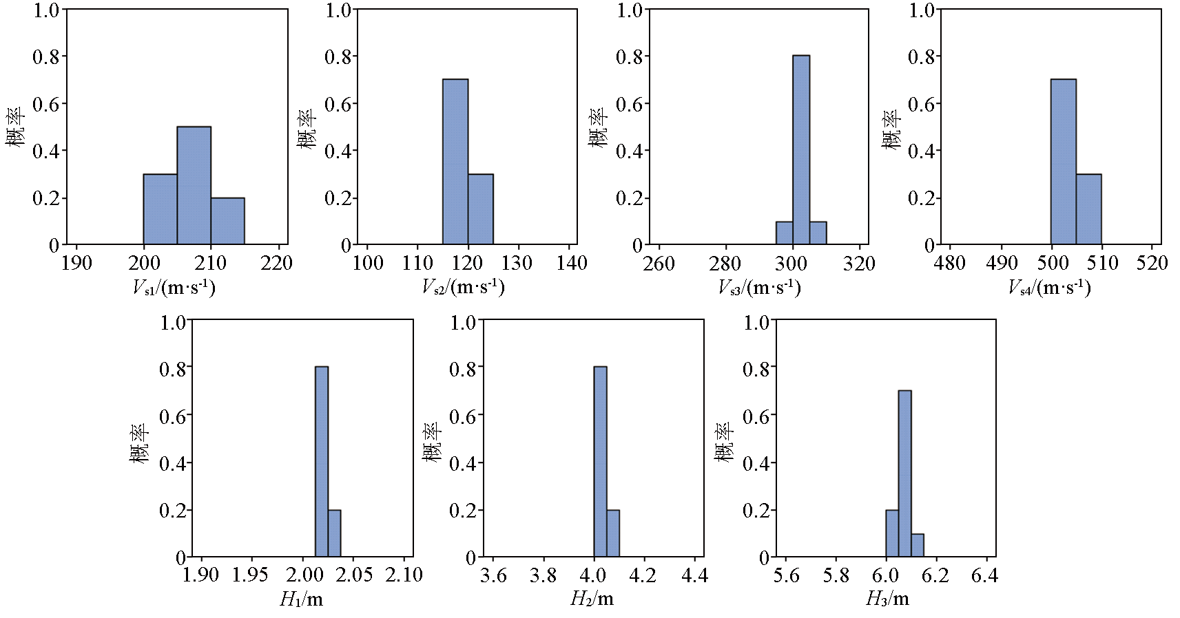 | 图12 10%随机噪声条件下模型2反演结果分布概率直方图 |