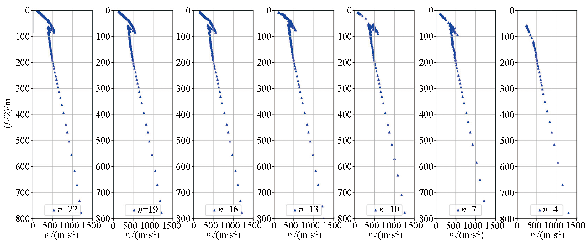 不同数量采集单元所得频散曲线