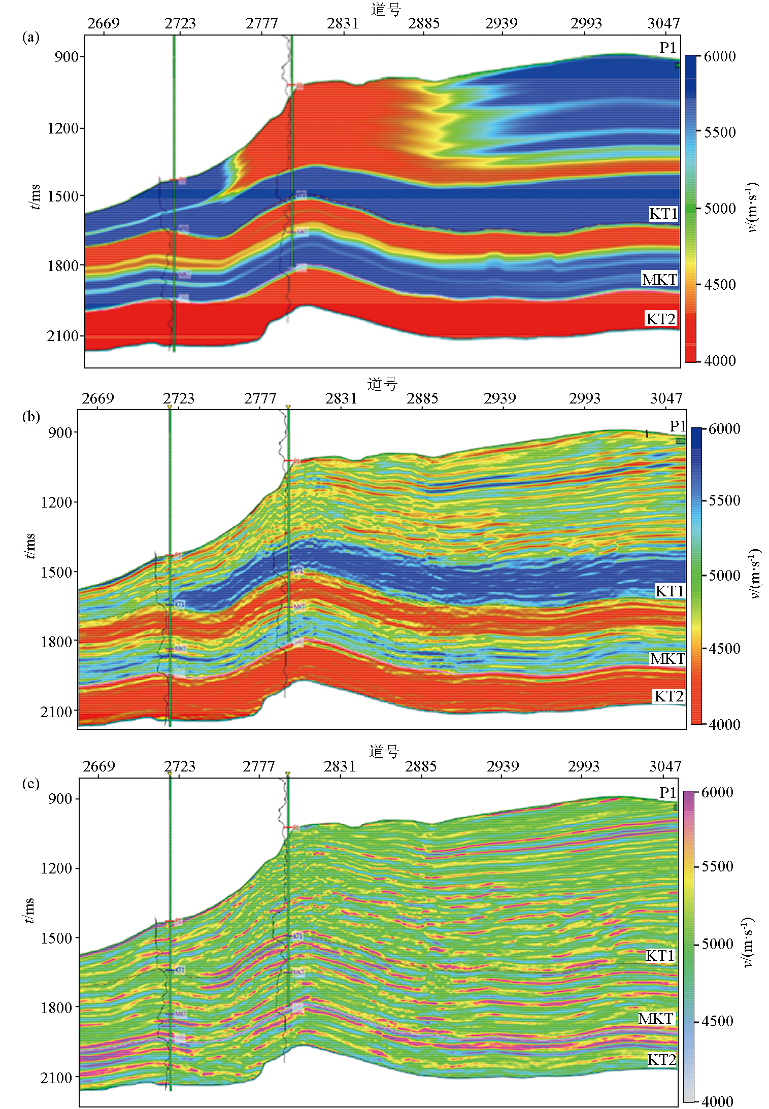 | Fig.10 Velocity profile of near east-west frequency inversion in the study area a—low frequency inversion;b—intermediate frequency inversion;c—high frequency inversion |