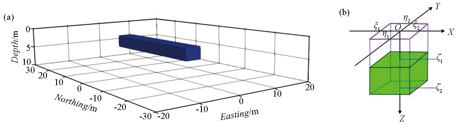| 图1 地下空洞模型三维立体图(a)和坐标位置(b) |