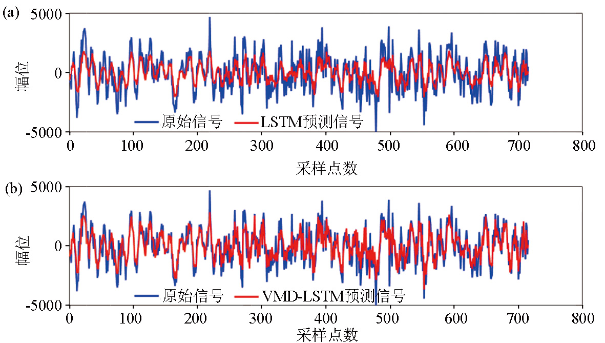 | 图12 LSTM预测信号(a)VMD-LSTM预测信号(b)与原始信号对比 |