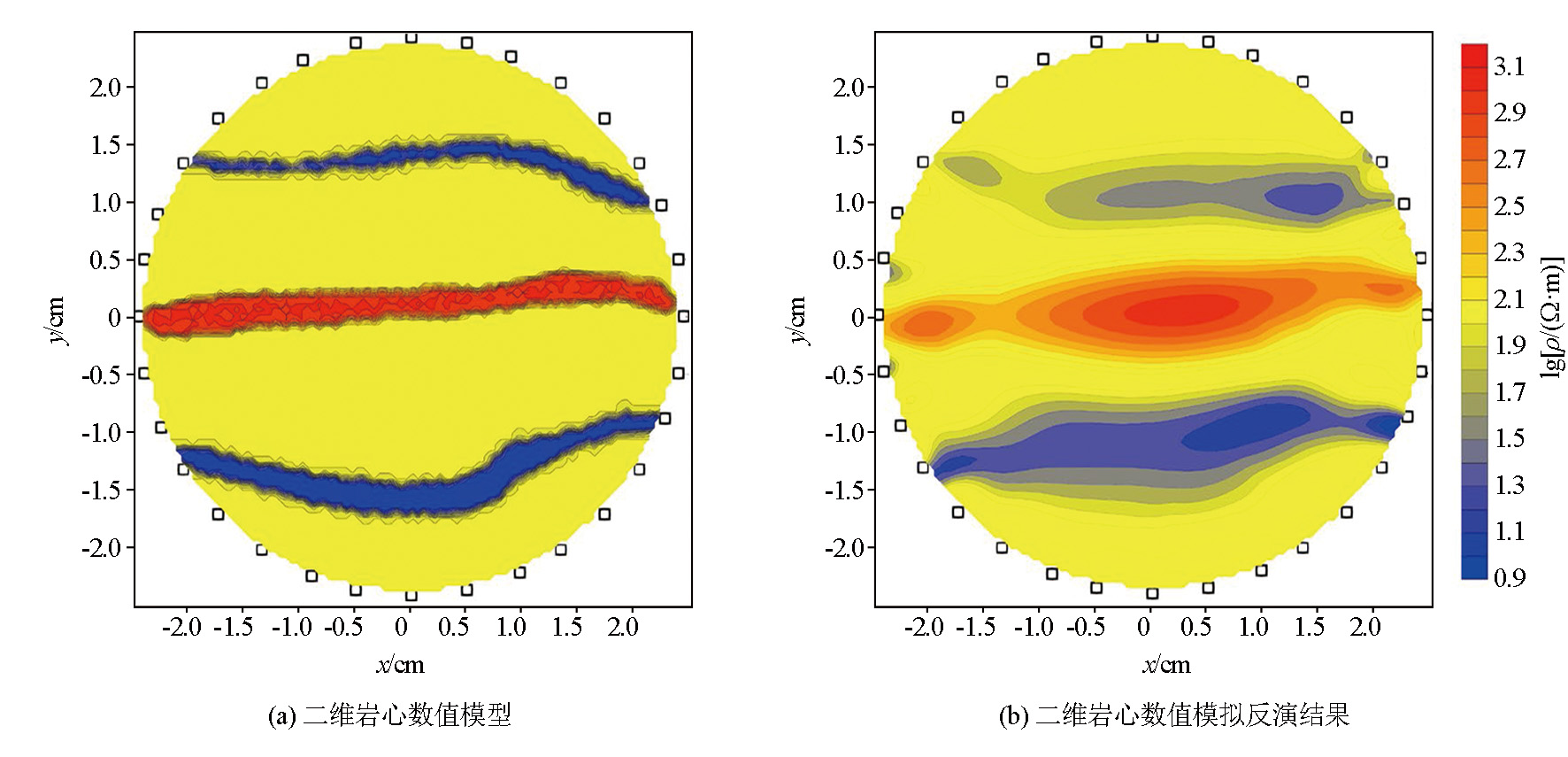 | 图5 中间高电阻率、两侧低电阻率的岩心裂隙模型数值模拟 |