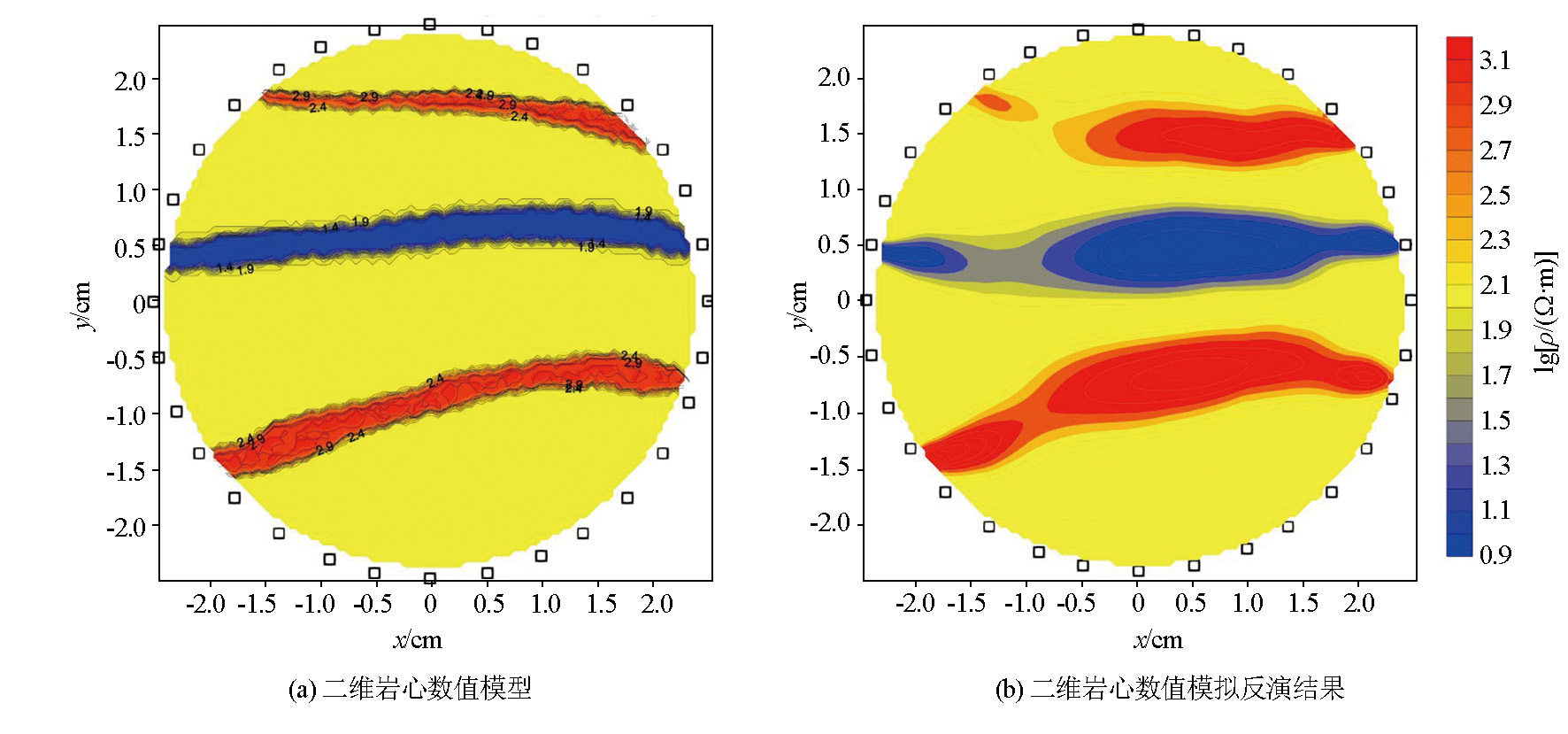 | 图6 中间低电阻率两侧高电阻率的岩心裂隙模型数值模拟 |
