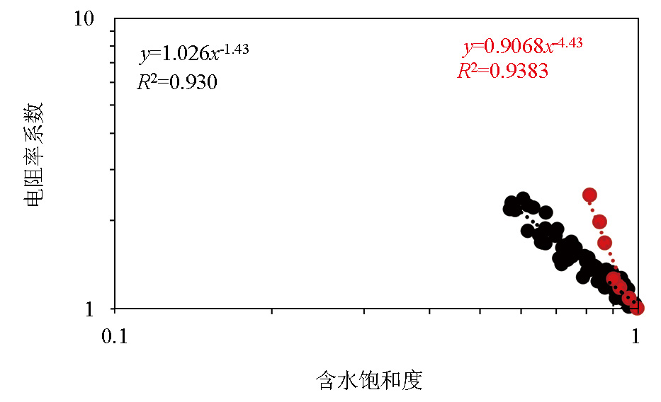 | 图3 太原组15块样品电阻率系数和含水饱和度关系 |