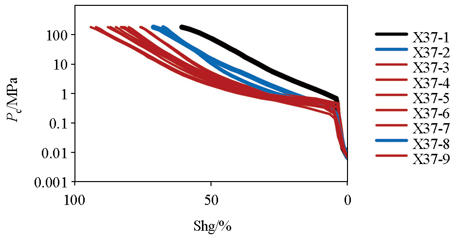 | Fig.4 Classification of capillary pressure curves for 15 samples from Taiyuan group |